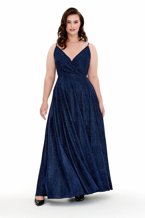 Dieses atemberaubende Kleid verfügt über schmale, verstellbare Träger und elegante Falten an der Brust, die das Dekolleté wunderschön zur Geltung bringen. Der V-Ausschnitt in Wickeloptik und der leicht ausgeschnittene Rücken verleihen dem Design eine raffinierte Note. Ein seitlicher Beinschlitz sorgt für zusätzliche Eleganz. Gefertigt aus festem, elegantem Stoff, mit edlem Schimmer, betont das Kleid die feminine Figur und kaschiert zugleich kleine Unvollkommenheiten. Perfekt für besondere Anlässe.
